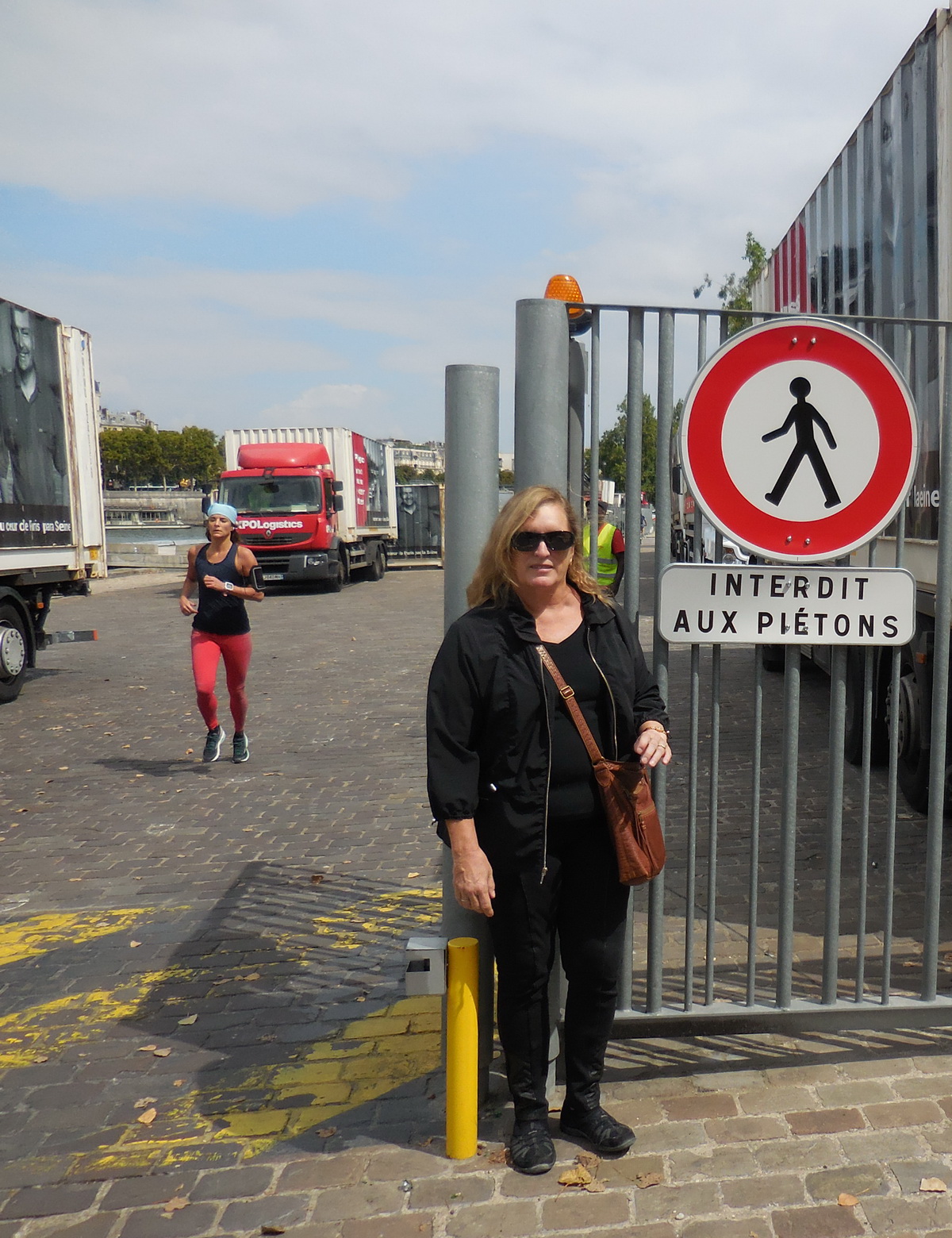 I'm ready to ignore the "forbidden to pedestrians" sign at the FranPrix port on the Seine. |